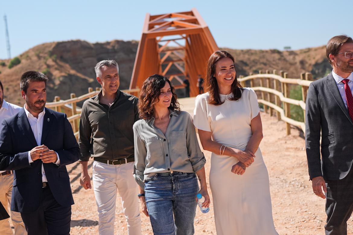 La presidenta también ha recorrido una nueva pasarela sobre el río Henares, desarrollada gracias a la colaboración público-privada y ya abierta al público. Esta infraestructura, que sustituye al antiguo puente histórico del Tren de la Azucarera, soluciona el problema de conectividad entre ambas orillas.